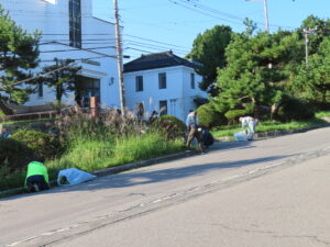 函館市西部地区観光エリアの植樹枡等を清掃し、事故防止と美化のボランティア活動を通じ